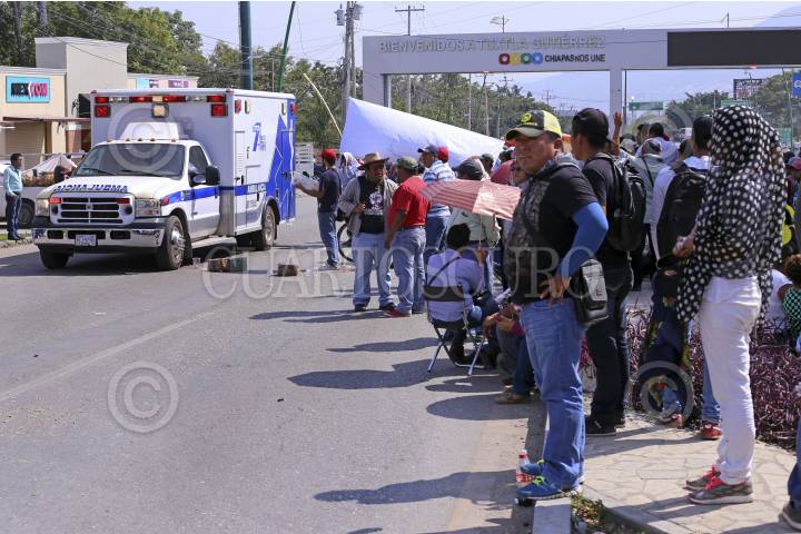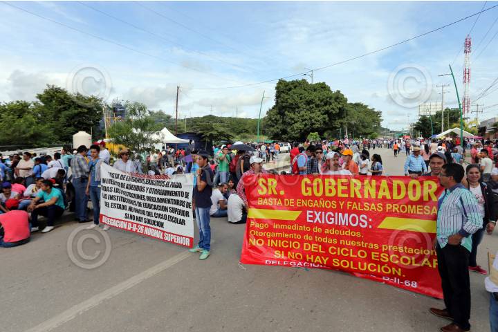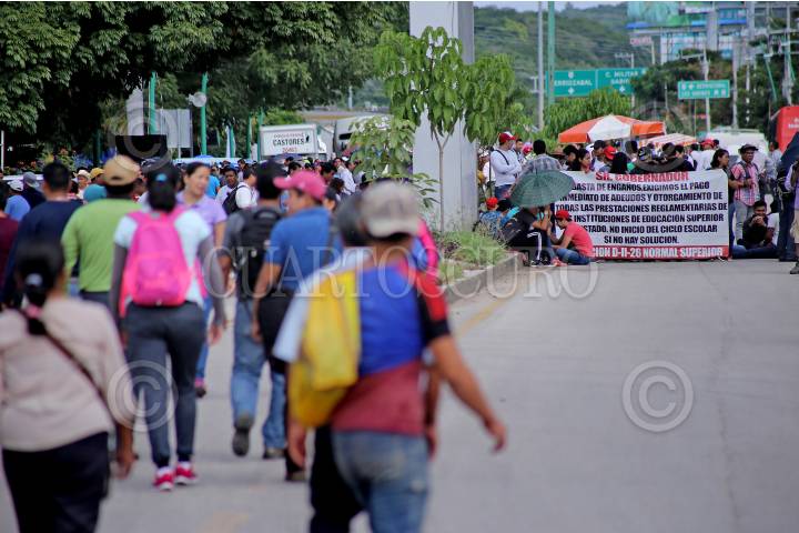 TUXTLA GUTIERREZ, CHIAPAS, 01SEPTIEMBRE2017.- Maestros pertenecientes a la Coordinadora Nacional de Trabajadores de la Educación, bloquearon esta mañana los principales acceso a la capital chiapaneca, permitiendo el paso de manera intermitente a vehículos de emergencia o particulares que trasladaran a personas delicadas de salud, su manifestación se debió al informe de Peña Nieto y su rechazo a las reformas estructurales, principalmente la Educativa. Personas que se dirigian a sus labores cotidianas tuvieron que caminar aproximadamente unos 500 metros para poder cruzar el bloqueo y continuar hacia su destino. FOTO: JESUS GARCIA /CUARTOSCURO.COM
