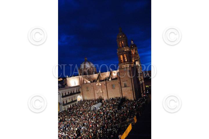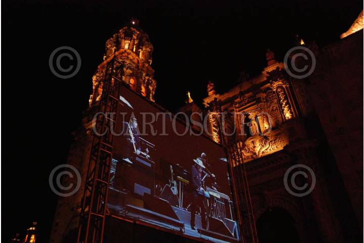 ZACATECAS, ZACATECAS, 25MARZO2008.-En el marco del XXII Festival Cultural Zacatecas 2008 hoy por la noche se presentó en la plaza de armas de la capital del estado el dios de la música Bob Dylan , ante miles de zacatecanos y visitantes que acudieron a escuchar el concierto. FOTO:CARLOS SEGURA/CUARTOSCURO.COM
