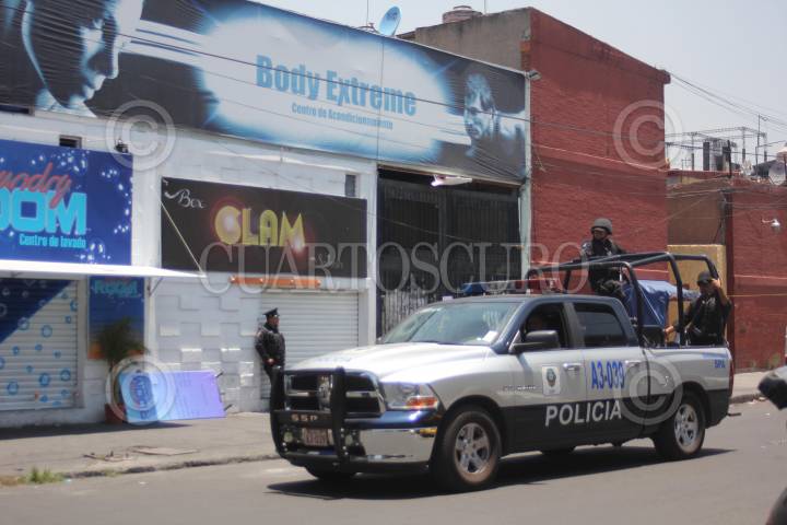 MÉXICO, D.F., 07JUNIO2013.- Elelementos de la SSP-DF, reguardan las instalaciones del gimnasio Body Extreme, donde el día de ayer fueron asesinadas cuatro personas. Polciias de diferentes coorporaciones realizan retenes en las inmediaciones del barrio de Tepito. FOTO: SAUL LOPEZ /CUARTOSCURO.COM