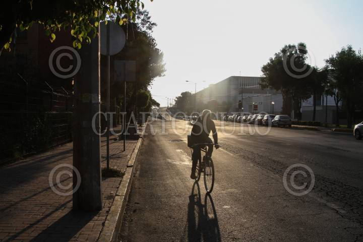 Ciclista aprovecha la poca afluencia de carros para transitar por Avenida Escuela Naval.