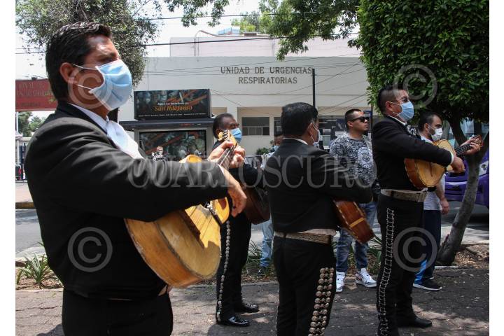 Mariachis de Garibaldi brindaron serenata a pacientes con COVID-19, en el INER.