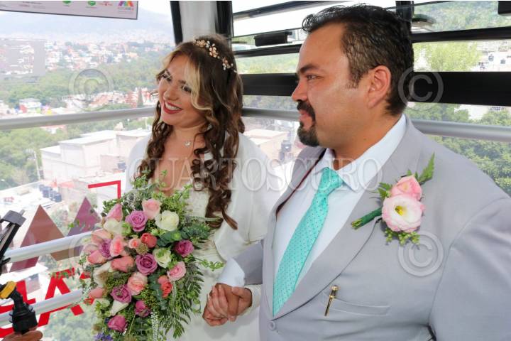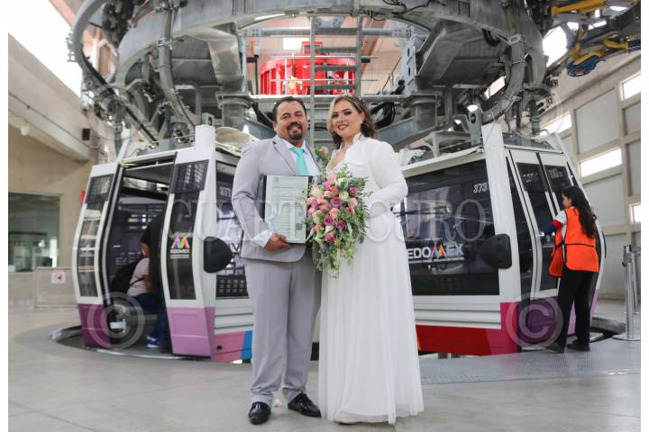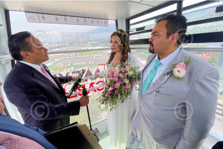 Primera boda realizada en el sistema de transporte teleférico Mexicable en Tlalnepantla de Baz, Estado de México.
