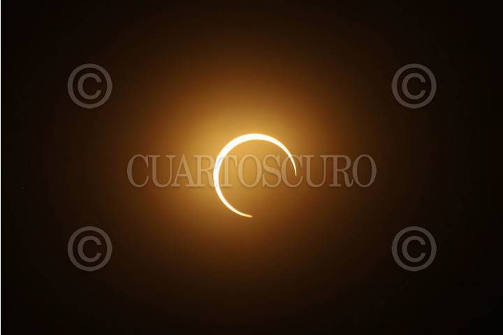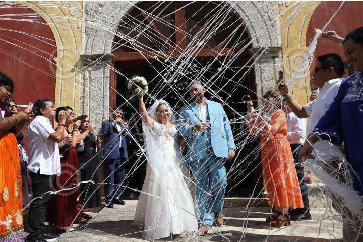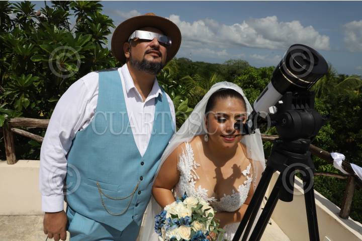 IXIL, YUCATÁN, 15OCTUBRE2023.- Ayer durante el eclipse anular solar que se pudo observar en la Península de Yucatán; Jazmín Araceli Gonzáles Ruiz e Isaac Medina Martínez se juraron amor eterno en la Iglesia de nuestra señora de la Asunción. Minutos antes de iniciar la misa familiares y amigos y los novios observaron el fenómeno del sol como parte de un ritual para reafirmar su amor. FOTO: MARTÍN ZETINA/CUARTOCURO.COM