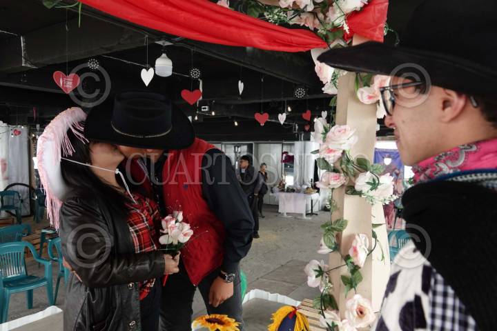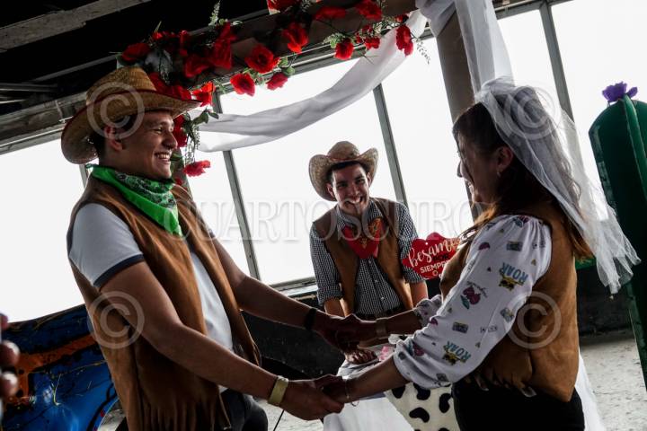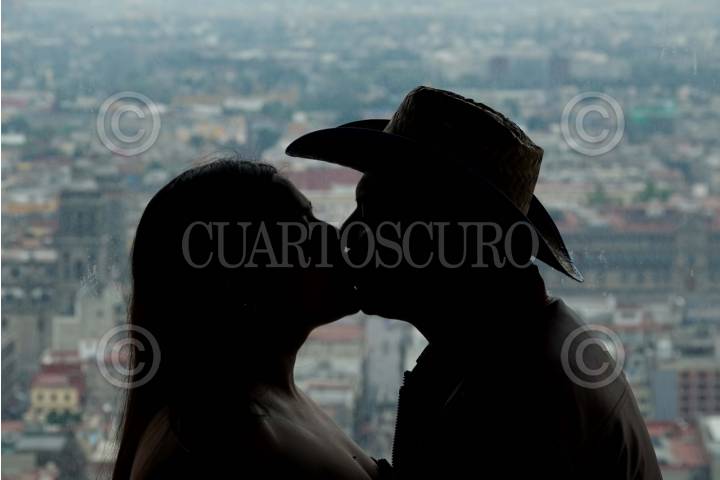 CIUDAD DE MÉXICO, 14FEBRERO2024.- Parejas acudieron a la Torre Latinoamericana para participar en las bodas temáticas con motivo del Día del Amor y la Amistad. Este año correspondió a bodas vaqueras por lo que las parejas contrajeron lazos con sombrero y botas. FOTO: GALO CAÑAS/CUARTOSCURO.COM