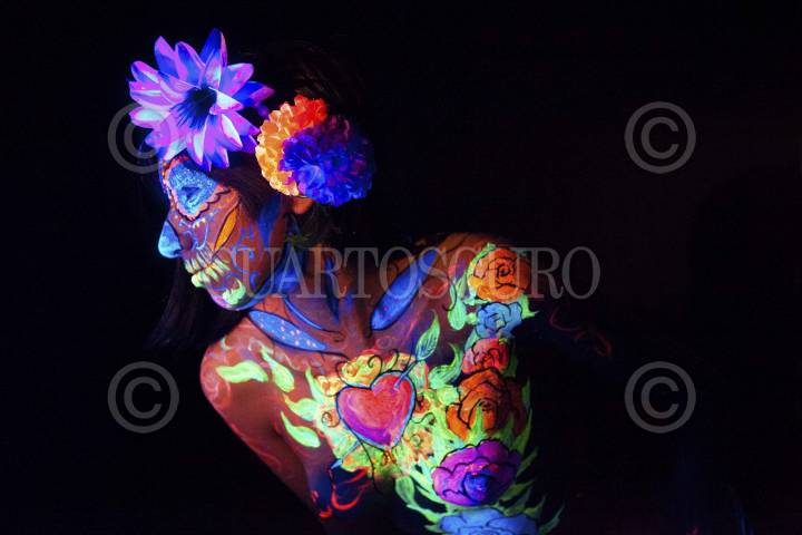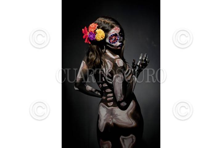 MÉXICO, D.F. 28OCTUBRE2014.- Justine Lecter fue una de las que participó en el performance del colectivo Ingenio Creativo, que cada mes organiza performances en espacios alternativos con el fin de estimular y preservar las tradiciones mexicanas; esta ocasión toco el turno a La Catrina, personaje del célebre José Guadalupe Posadas, y que con pinceles y el trabajo corporal llevaron a las lentes fotográficas diversas interpretaciones en lo que se denominó “Shoting Colectivo Catrinas”. Ingenio Creativo realiza mensualmente una reunión multidiciplinaria entre diversos artistas, disciplinas desde el body pain, el modelaje la fotografía , entre otros, se dan cita para intercambiar experiencias. Esta ocasión participaron Justine Lecter, Iliana Gómez, Elziee Dlr, Neko Noir y Angel Juárez dando vida a las catrinas y catrines; Cerox Flavio Romero, Robert Etereoplasta como pintores. FOTO: JUAN PABLO ZAMORA /CUARTOSCURO.COM