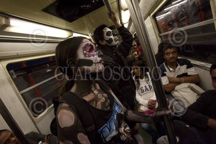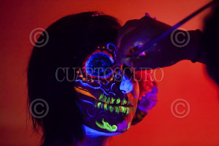 MÉXICO, D.F. 28OCTUBRE2014.- Iliana Goméz, organizadora del colectivo Ingenio Creativo, que cada mes organiza performances en espacios alternativos con el fin de estimular y preservar las tradiciones mexicanas; esta ocasión toco el turno a La Catrina, personaje del célebre José Guadalupe Posadas, y que con pinceles y el trabajo corporal llevaron a las lentes fotográficas diversas interpretaciones en lo que se denominó “Shoting Colectivo Catrinas”. Ingenio Creativo realiza mensualmente una reunión multidiciplinaria entre diversos artistas, disciplinas desde el body pain, el modelaje la fotografía , entre otros, se dan cita para intercambiar experiencias. Esta ocasión participaron Justine Lecter, Iliana Gómez, Elziee Dlr, Neko Noir y Angel Juárez dando vida a las catrinas y catrines; Cerox Flavio Romero, Robert Etereoplasta como pintores. FOTO: JUAN PABLO ZAMORA /CUARTOSCURO.COM