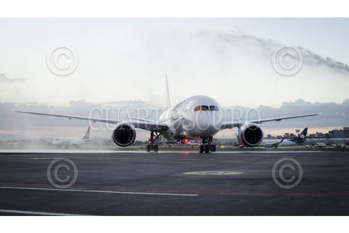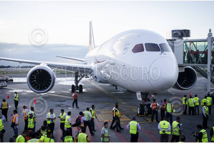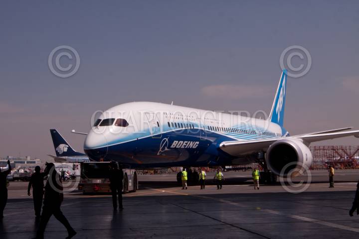 MÉXICO, D.F., 07MARZO2012.- La tarde de hoy aterrizó por primera vez en el Aeropuerto Internacional de la Ciudad de México un avión Boeing 787 Dreamliner, como parte de una gira que realiza alrededor del mundo, como parte de la gira mundial Dream Tour que comenzó el 1 de marzo e incluyen visitas en Canadá y Estados Unidos. FOTO: SAÚL LÓPEZ /CUARTOSCURO.COM