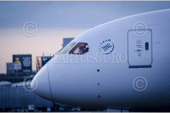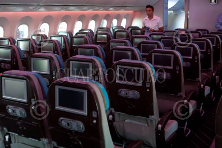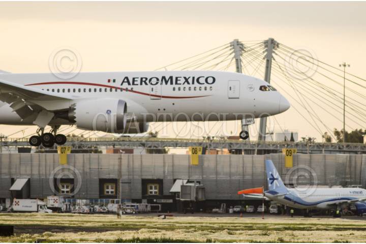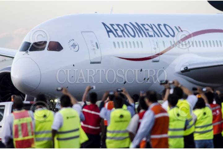 MÉXICO D.F., 08MARZO2012.- Un avión Boeing 787 Dreamliner fue entregado a Aeroméxico como parte de una gira mundial de exhibición. Aeroméxico contará con 7 aviones en los próximos años así mismo se anunció el plan comercial de esta aerolínea el cual incluye nuevos destinos, rutas y frecuencias para los mercados nacional e internacional. FOTO: RODOLFO ANGULO /CUARTOSCURO.COM