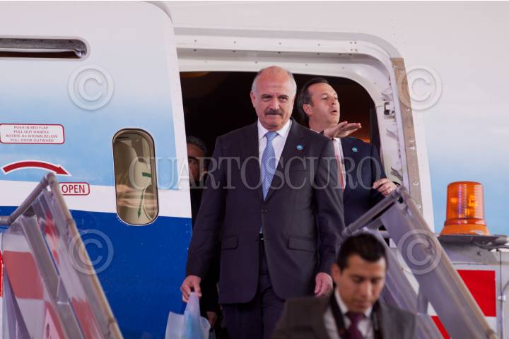 MÉXICO D.F., 08MARZO2012.- José Luis Barraza, presidente del consejo de administración de Aeroméxico durante la entrega de un avión Boeing 787 Dreamliner parte de una gira mundial de exhibición. Aeroméxico contará con 7 aviones en los próximos años así mismo se anunció el plan comercial de esta aerolínea el cual incluye nuevos destinos, rutas y frecuencias para los mercados nacional e internacional. FOTO: RODOLFO ANGULO /CUARTOSCURO.COM