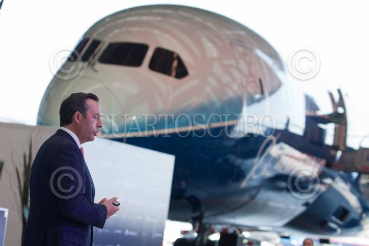 MÉXICO D.F., 08MARZO2012.- Andrés Conesa, director general de Aeroméxico durante la entrega de un avión Boeing 787 Dreamliner parte de una gira mundial de exhibición. Aeroméxico contará con 7 aviones en los próximos años así mismo se anunció el plan comercial de esta aerolínea el cual incluye nuevos destinos, rutas y frecuencias para los mercados nacional e internacional. FOTO: RODOLFO ANGULO /CUARTOSCURO.COM