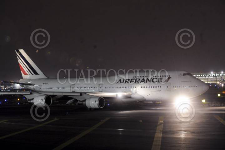 MÉXICO, D.F., 23ENERO2013.- En un Boeing 747 de la compañía AirFrance Florence Cassez partió esta noche a su país de origen, después de haber sido liberada del penal de Tepepan. FOTO: LUIS CARBAYO / CUARTOSCURO.COM