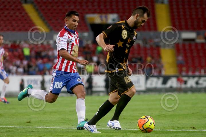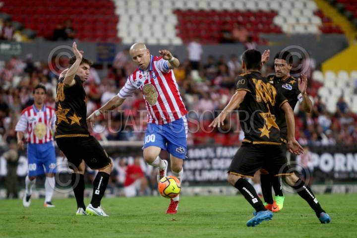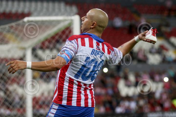 ZAPOPAN, JALISCO, 11AGOSTO2010.- Adolfo "El Bofo" Bautista de las Chivas del Guadalajara festeja su anotación en contra del Internacional de Porto Alegre del partido de ida de la final de la copa Santander Libertadores 2010 que se realiza en el estadio Omnilife. Chivas gana 1 gol por 0 al medio tiempo. FOTO: RODOLFO ANGULO/CUARTOSCURO.COM
