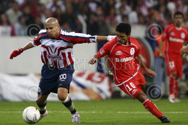 GUADALAJARA, JALISCO, 07DICIEMBRE2006.- En un partido muy cerrado las Chivas Guadalajara y los Diablos del Toluca empatan a un gol en el partido de ida por la final del campeonato mexicano. En la imagen el rojiblanco Adolfo Bautista "El Bofo" durante las acciones del juego. FOTO: JOSÉ MARÍA MARTÍNEZ/CUARTOSCURO.COM