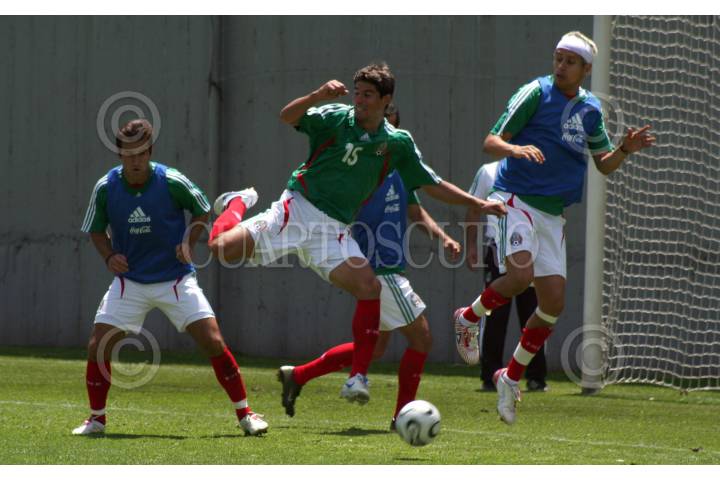 MÉXICO, D.F. 23MARZO2007.- Los jugadores Adolfo "Bofo" Bautista y José Alberto Castro durantre el entrenamiento de la selección mexicana. FOTO: PAOLA HIDALGO/CUARTOSCURO.COM