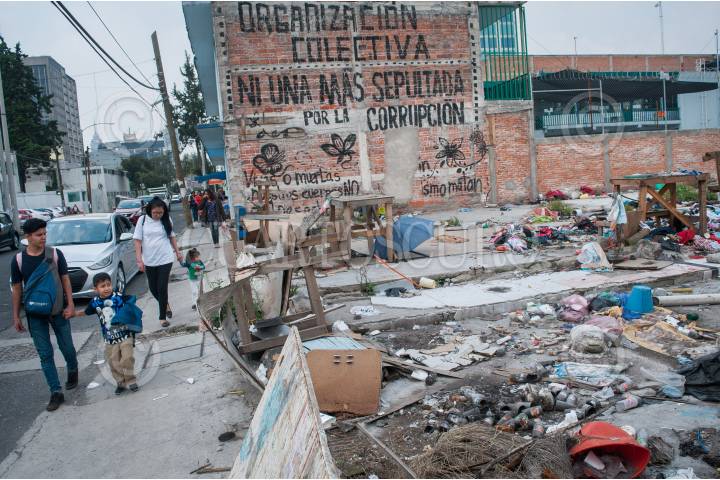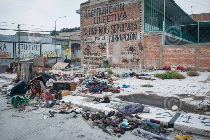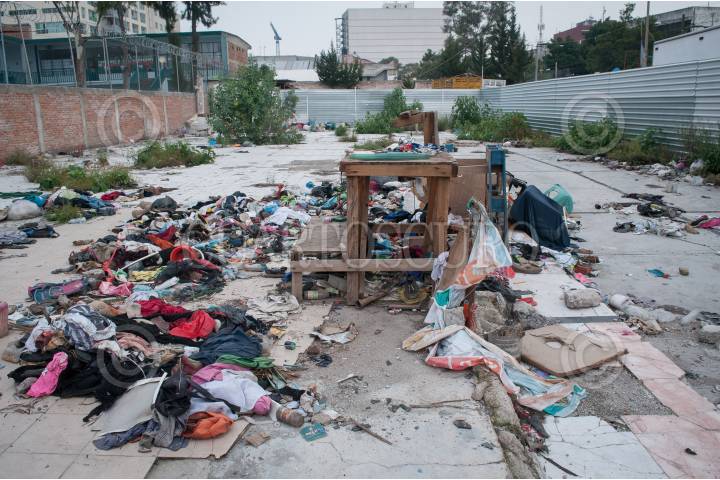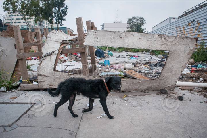 CIUDAD DE MÉXICO, 18SEPTIEMBRE2018.- Entre hierba crecida, basura, ropa vieja y pintas se encuentra el predio de Bolívar 186, donde se derrumbó un edificio por el temblor del 19 de septiembre de 2017 a un día de su aniversario. Ahí se encontraba una construcción de 4 pisos que albergaba talleres textiles y bodegas de ropa, una empresa era de dueños coreanos y otra de judíos. En ese lugar murieron más de 20 personas. FOTO: DIEGO SIMÓN SÁNCHEZ /CUARTOSCURO.COM