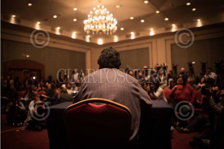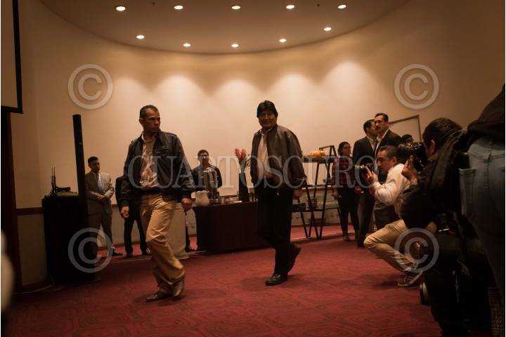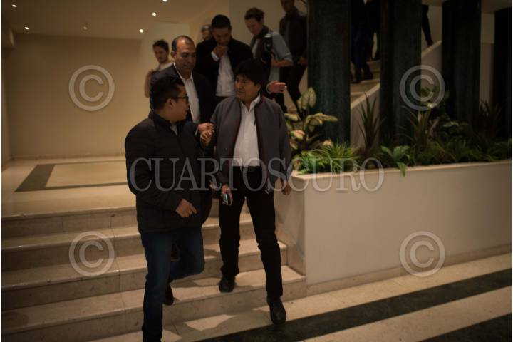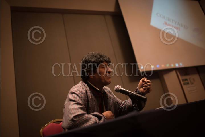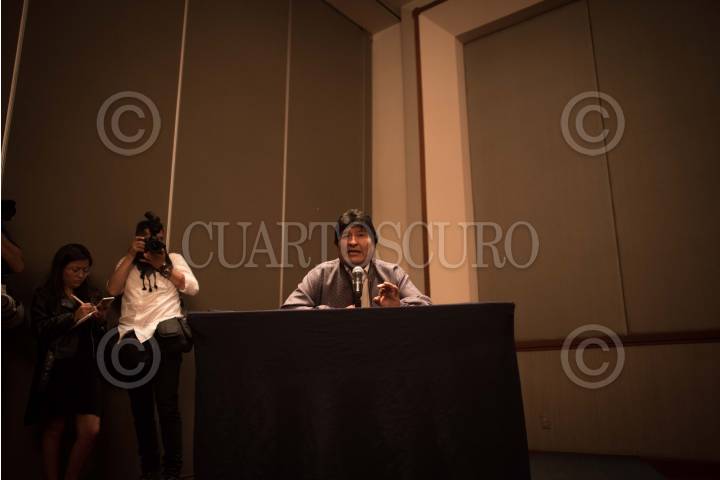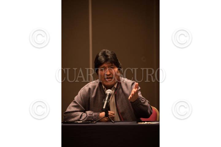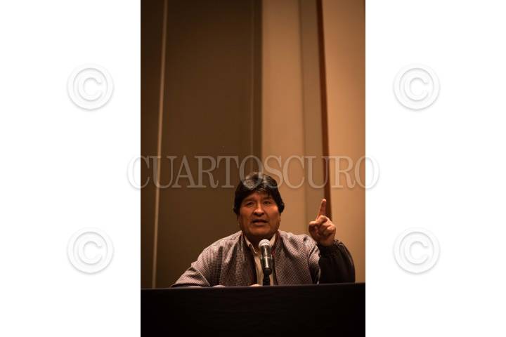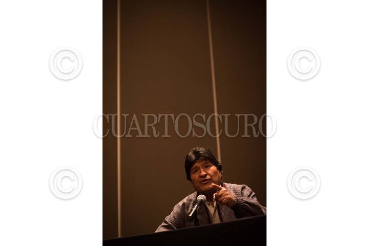 CIUDAD DE MÉXICO, 20NOVIEMBRE2019.- Evo Morales, quien renunció a la Presidencia de Bolivia ante la presión que los grupos de oposición en el país sudamericano ejercían sobre su mandato, ofreció una conferencia de prensa en un hotel ubicado en avenida Revolución, en donde habló sobre la situación de conflicto social que vive su patria. FOTO: PEDRO ANZA /CUARTOSCURO.COM