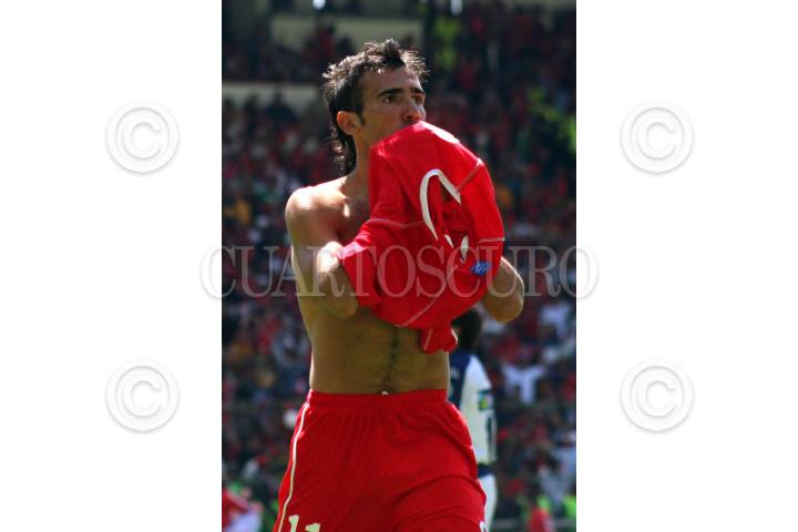 TOLUCA, ESTADO DE MÉXICO, 11FEBRERO2007.- Vicente Sánchez celebra el segundo gol del Toluca, con el que empató a dos goles con los Pumas de la Universidad, en el estadio Nemesio Diez. FOTO: ISAAC ESQUIVEL/CUARTOSCURO.COM