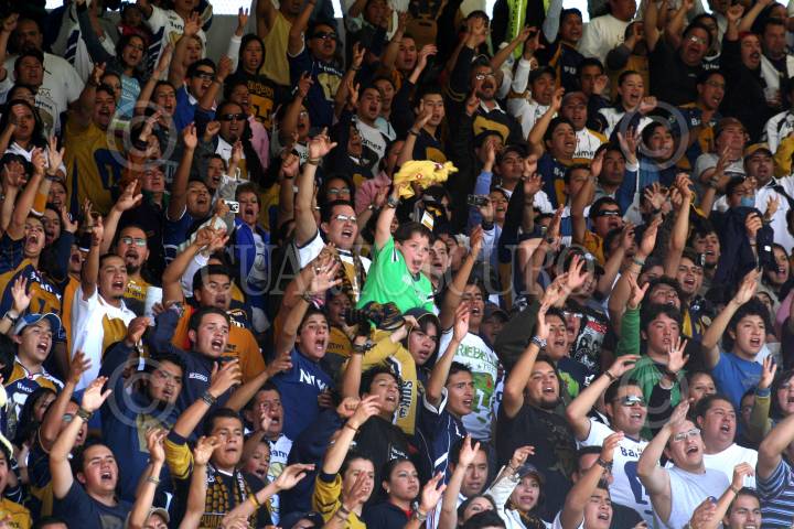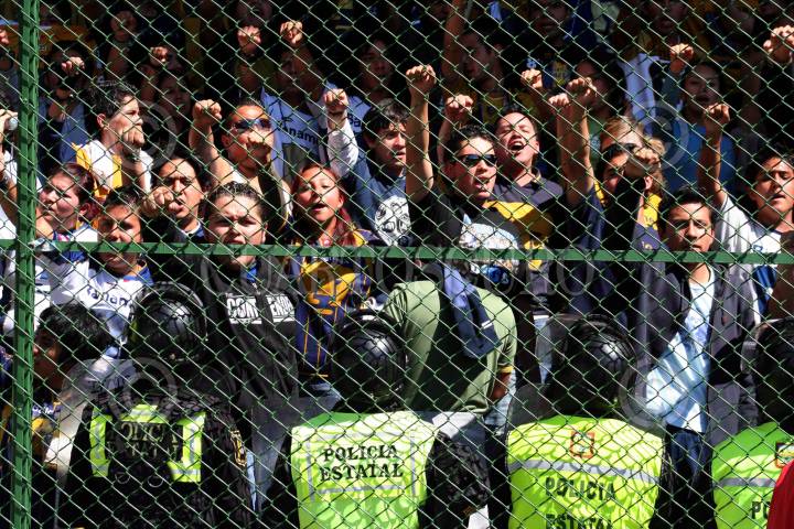 TOLUCA, ESTADO DE MÉXICO, 11FEBRERO2007.- La porra de los Pumas de la UNAM estuvo custodiada por elementos de la seguridad del estado, lo que evitó mayor incidentes. FOTO: ISAAC ESQUIVEL/CUARTOSCURO.COM