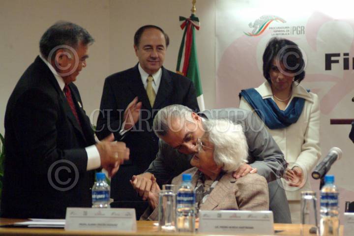MEXICO, D. F. 26OCTUBRE2004.- Martiniano León Pesch, Rafael Macedo de la Concha, titular de la PGR, y María de los Ángeles Fromow, titular de la FEPADE, estuvieron presentes en la firma de convenio entre la PGR y la AMEPAM en las intalaciones de la Procuraduría. FOTO: Iván Stephens/CUARTOSCURO.COM