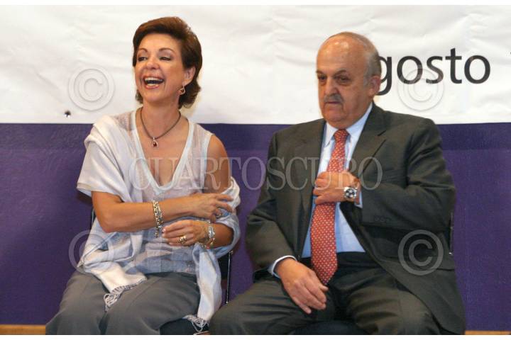 MEXICO, D.F. 15AGOSTO2005.- Marta Sahagún de Fox y Pedro Borda, titular del INAPAM durante el Foro Las Mujeres Adultas Mayores y las Redes Sociales. FOTO: Nelly Salas/CUARTOSCURO.COM