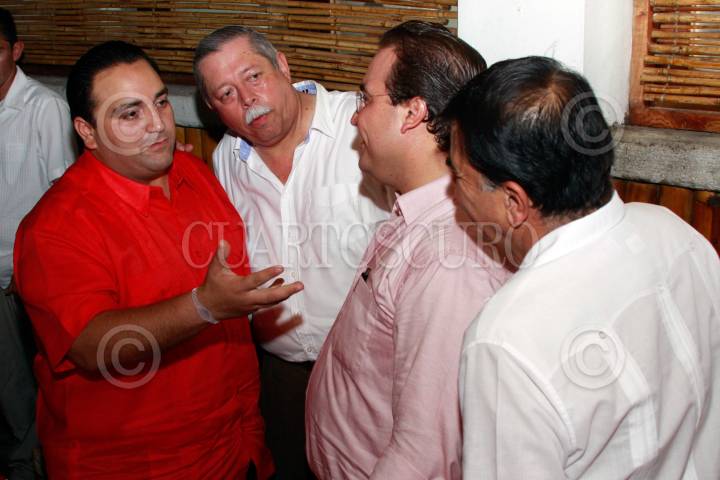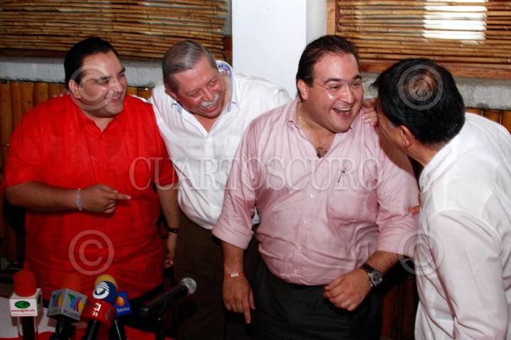 BOCA DEL RÍO, VERACRUZ, 18JULIO2010.- Roberto Borge Angulo, gobernador electo de Quintana Roo junto a Egidio Torres Cantú Gobernador electo de Quintana Roo; Javier Duarte, de Veracruz y Mariano González Zarur, Tlaxcala durante la reunión que mantuvieron para tratar temas de agenda y comprometerse a trabajar en proyectos comunes para la mejora de los estados. FOTO: FÉLIX MÁRQUEZ/CUARTOSCURO.COM
