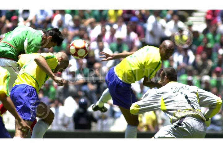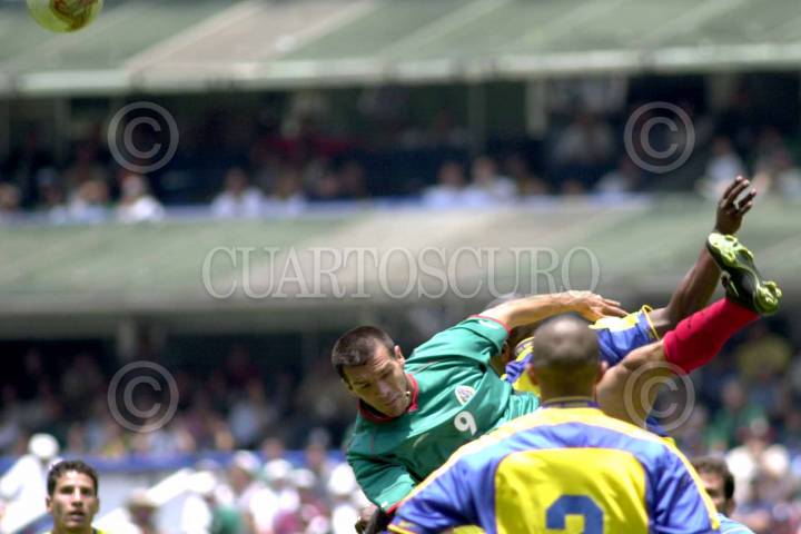 Jared Borgetti fue el autor del gol que le dio el triunfo a la Selección de México ante Brasil en el primer partido del Grupo "A" de la Copa Oro, jugado en el Estadio Azteca ante más de 60 mil aficionados. FOTO: Alberto Valdez/CUARTOACURO.COM