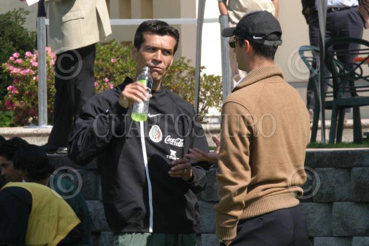 MÈXICO, D.F. 23ENERO2007.- La selecciòn Nacional de Futbol tuvo su segundo entrenamiento bajo la direcciòn tècnica de Hugo Sànchez Marquez. En la imagen con Andrès Guardado y Jared Borgetti. FOTO: PAOLA HIDALGO/CUARTOSCURO.COM