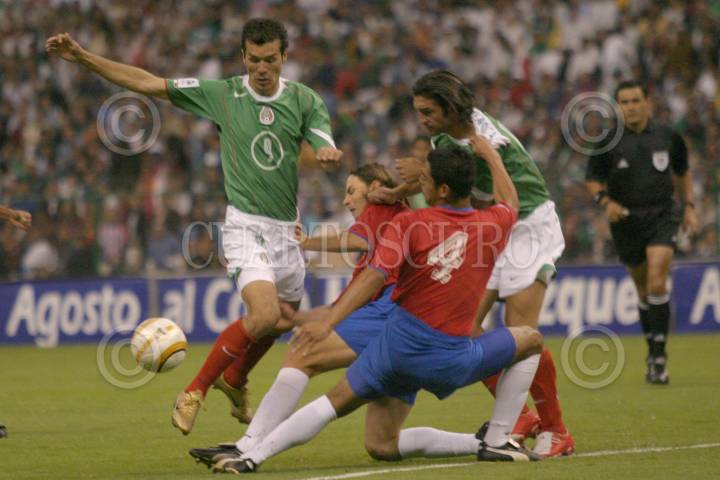 MEXICO D.F.17AGOSTO2005.- Jared Borguetti jugador de la selección mexicana de futbol disputa un balón con el jugador de la selección de Costa Rica en el partido de eliminatoria de la CONCACAF rumbo al mundial de Alemania 2006. FOTO: Moisés Pablo/CUARTOSCURO.COM
