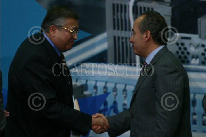 MÉXICO, D.F., 11FEBRERO2009.- Enrique Aguilar Borrego, presidente del Congreso del Trabajo saluda al presidente Felipe Calderón durante el evento en donde se anuncio el Programa para la Preservación del Empleo que se realizo en la residencia oficial de Los Pinos. FOTO: RODOLFO ANGULO/CUARTOSCURO.COM