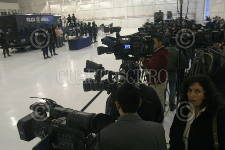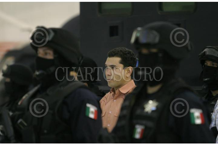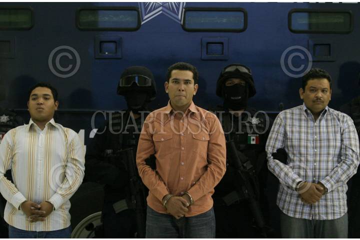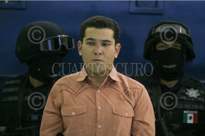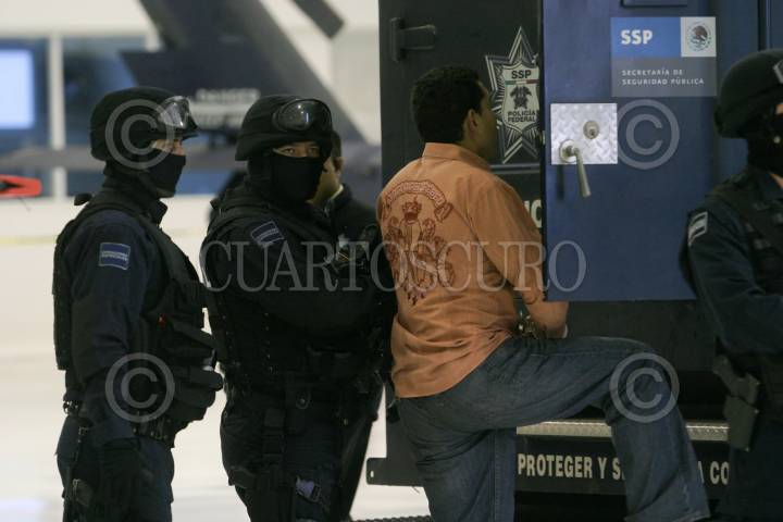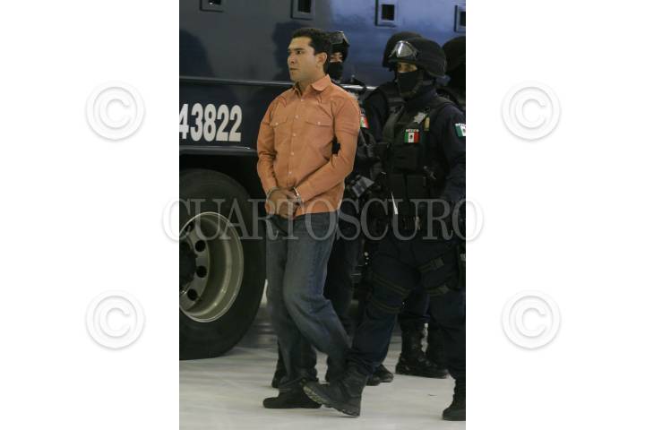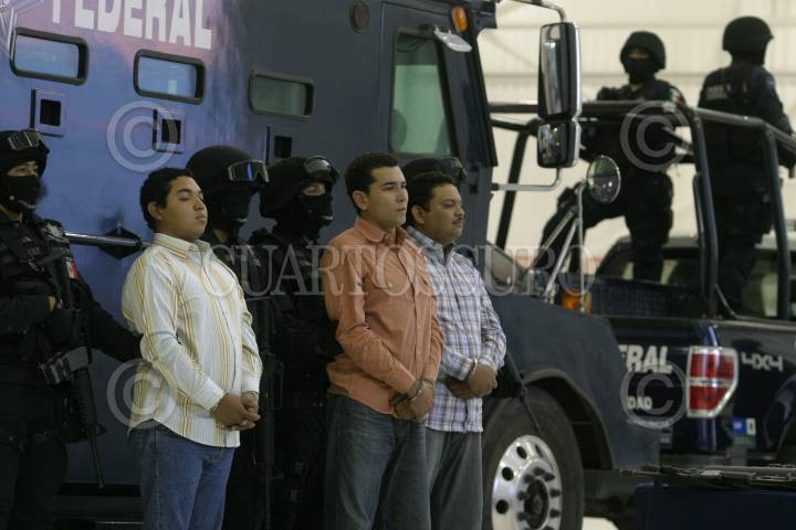 MÉXICO, D.F., 12ABRIL2010.- La Secretaria de Seguridad Pública Federal, presentaron ante los medios de comunicación a José Manuel Cuevas Arias, alias "El Borrego", presunto integrante de la Familia Michoacana y responsable regional del sur del estado de Guanajuato, "El Borrego" fue detenido junto con dos personas en el estado de Michoacan y se les fue decomisadas armas de alto calibre y granadas de fragmentación. FOTO: SAÚL LÓPEZ/CUARTOSCURO.COM