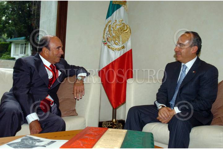 MEXICO, D.F.23OCTUBRE2007.- El presidente Felipe Calderón Hinojosa recibió en la Residencia Oficial de Los Pinos a Emilio Botín presidente del consejo de administración de Santander. FOTO: ARIEL GUTIERREZ/CUARTOSCURO.COM