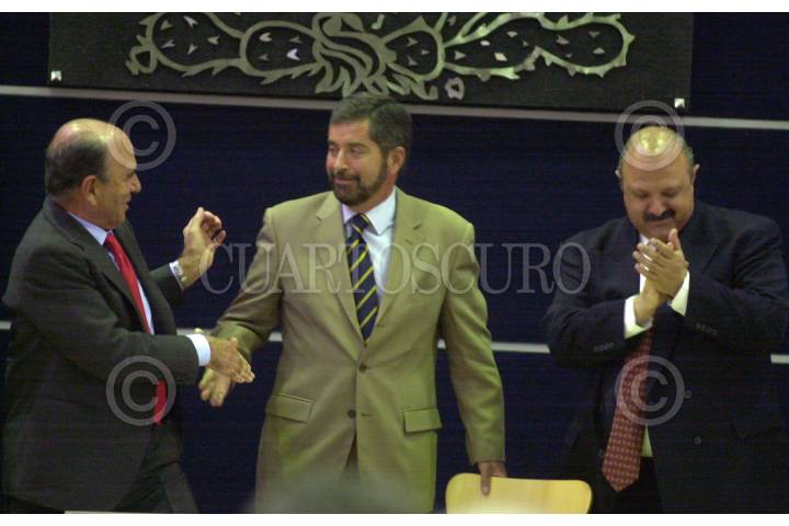 MEXICO, D.F. 30MARZO2005.- Emilio Botín, presidente del Grupo SANTANDER, Juan Ramón de la Fuente, rector de la UNAM, y Reyes Tamez Guerra, secretario de Educación Pública, estuvieron presentes en la ceremonia protocolaria de inicio del espacio común de educación superior en México y el programa de movilidad universitaria de las macrouniversidades de América Latina y el Caribe en las instalaciones de la UNAM. FOTO: Iván Stephens/CUARTOSCURO.COM