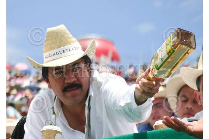 OAXACA, OAXACA 21JULIO2008.- El gobernador del estado de Oaxaca Ulises Ruiz Ortiz con botella de mezcal en mano asistió en compañía de el presidente municipal de la entidad José Antonio Hernández Fraguas, y el presidente de la comisión del congreso Herminio Cuevas Chávez a una edición más de la fiesta de la Guelaguetza. FOTO: MAX NÚÑEZ CARDOZA/CUARTOSCURO.COM