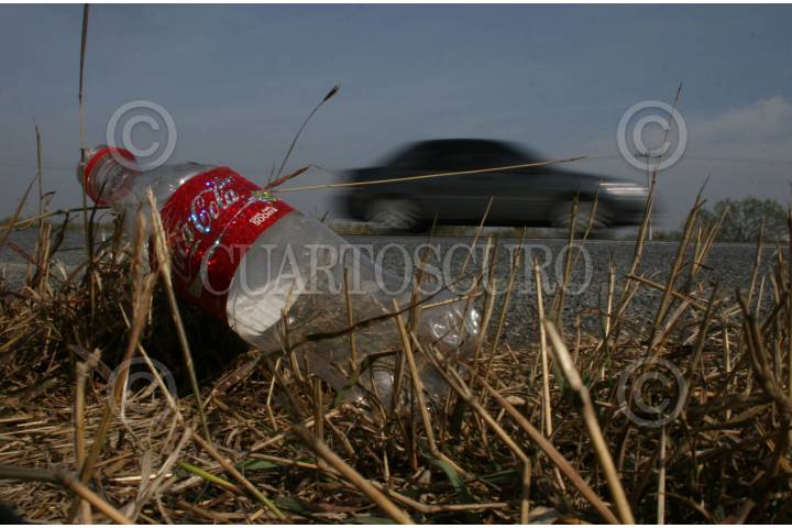 MONTERREY, NUEVO LEON, 23DICIEMBRE2008.- La imprudencia de las personas que manejan en este periódo vacacional, salta a la vista en esta parte de la carretera Monterrey-Nuevo Laredo, a la altura del kilómetro 40, donde se observan embases de plastico; toxicos y dañinos para la naturaleza. También se ven bolsas de plástico y carton, que contaminan el ambiente. FOTO: MISAEL VALTIERRA/CUARTOSCURO.COM