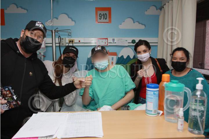 El boxeador británico Scott Welch durante la entrega de juguetes a menores atendidos en el Hispital La Raza