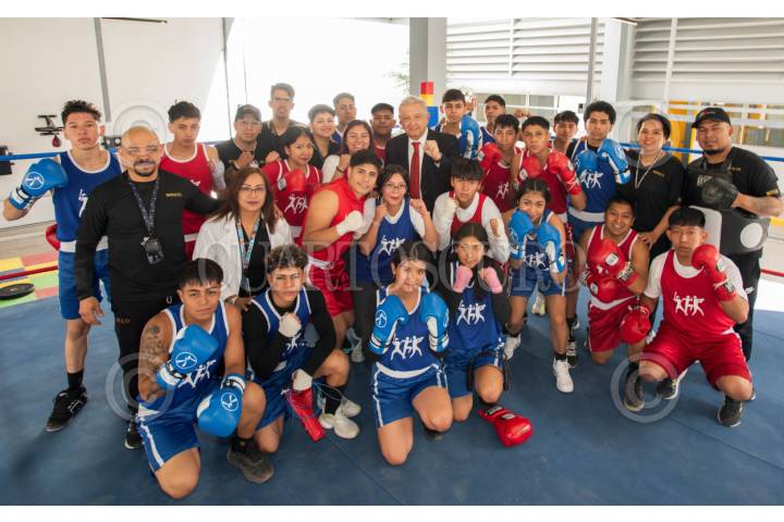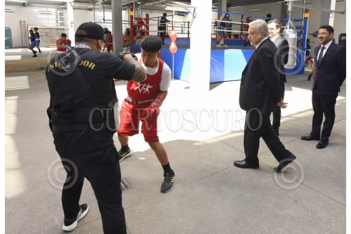 CIUDAD DE MÉXICO, 12FEBRERO2024.- Andrés Manuel López Obrador, Presidente de México, encabezó la puesta en marcha del Bachillerato Tecnológico de Educación y Promoción Deportiva, plantel CDMX, Tepito-Box, ahí convivió con los jóvenes boxeadores. FOTO: PRESIDENCIA/CUARTOSCURO.COM Foto: /Presidencia