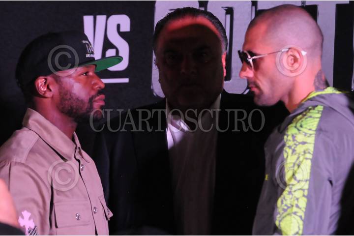 CIUDAD DE MÉXICO, 21AGOSTO2024.- Floyd Mayweather Jr. y John Gotti III se miran cara a cara al término de su conferencia de prensa de esta tarde. FOTO: DANIEL AUGUSTO /CUARTOSCURO.COM