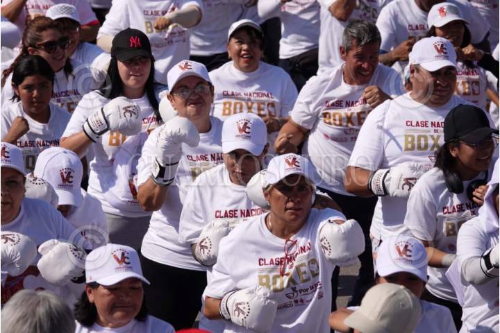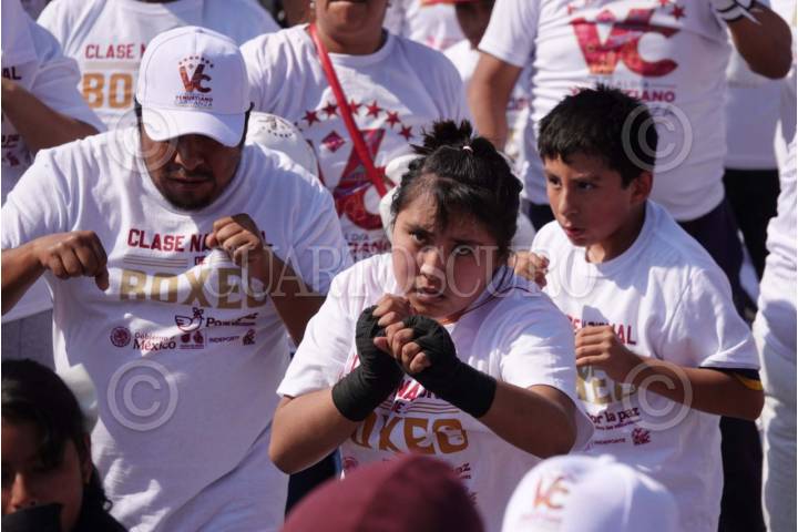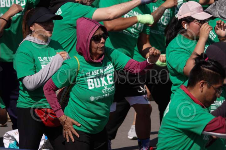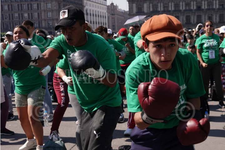 CIUDAD DE MÉXICO, 06ABRIL2025.- Cientos de capitalinos de todas las alcaldías asistieron a la Clase Masiva de Boxeo realizada en el Zócalo capitalino. FOTO: GRACIELA LÓPEZ/CUARTOSCURO.COM