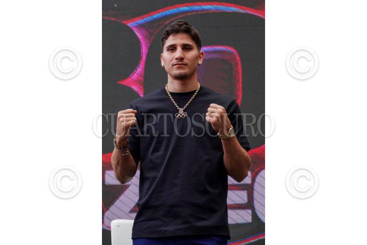 CIUDAD DE MÉXICO, 11JUNIO2025.- El boxeador sinaloense Marco Verde durante el anuncio en las instalaciones de Tv Azteca de su debut oficial en suelo mexicano el próximo 12 de julio en Sinaloa. FOTO: GALO CAÑAS/CUARTOSCURO.COM