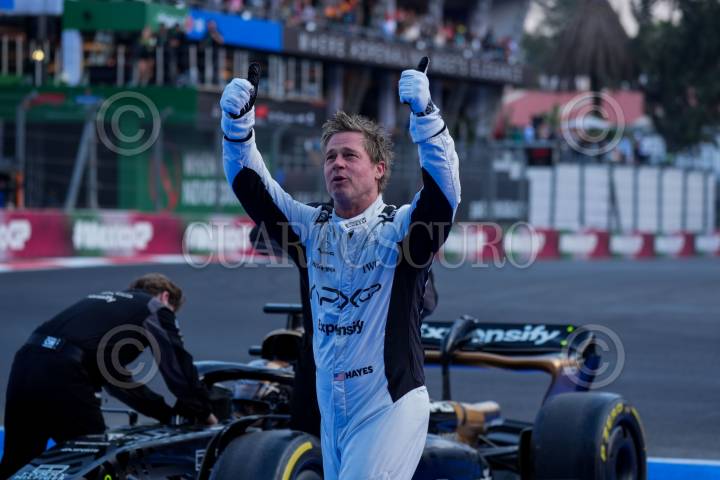 CIUDAD DE MÉXICO, 26OCTUBRE2024.- El actor estadounidense Brad Pitt acudió al Gran Premio de la Ciudad de México, en el Autódromo Hermanos Rodríguez, para grabar algunas escenas de la película F1 en la que es el protagonista. FOTO: GALO CAÑAS/CUARTOSCURO.COM
