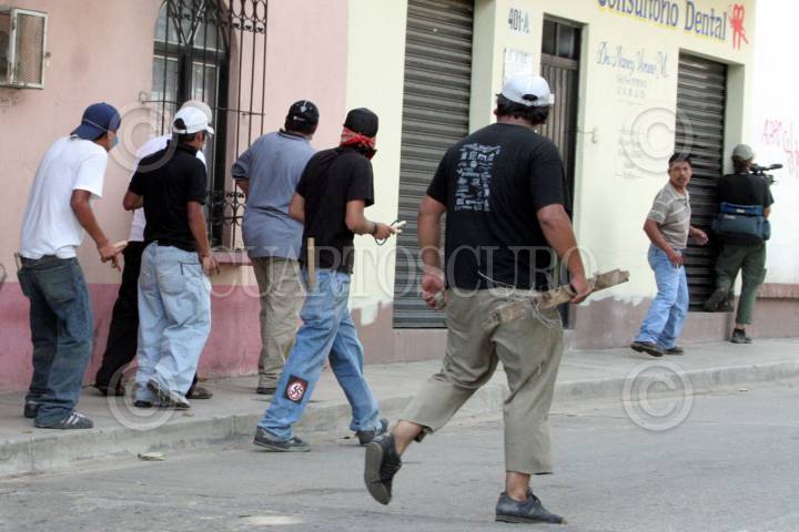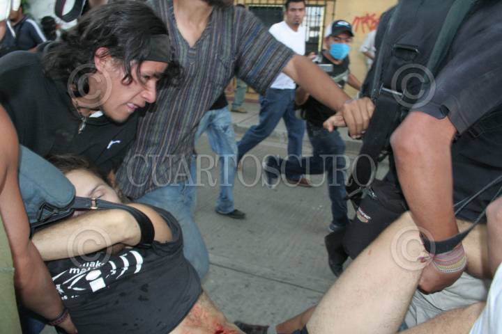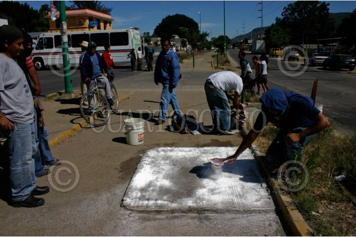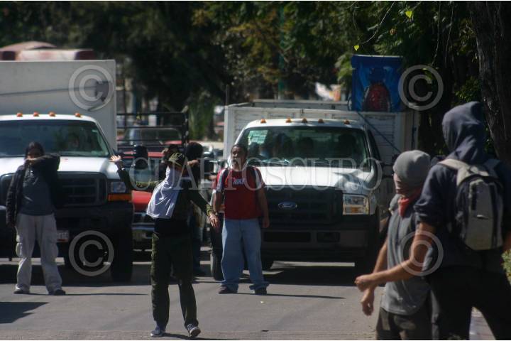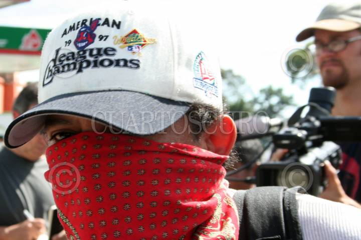 OAXACA, OAXACA, 27OCTUBRE2008.- Integrantes de la Asamblea Popular de los Pueblos de Oaxaca (APPO) iniciaron este lunes un bloqueo entre las calles de Calicanto y Avenida Ferrocarril como parte del programa establecido por el aniversario luctuoso del periodista estadounidense Bradley Roland Will. FOTO: MAX NÚÑEZ/CUARTOSCURO.COM