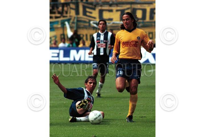 MÉXICO, D.F., 01MARZO2009.- Braulio Luna jugador de San Luis disputa el balon con el americanista Fernando Ortíz en el partido que cerró la fecha ocho del Torneo Clausura 2009 del futbol mexicano. FOTO: SÁSHENKA GUTIERREZ/CUARTOSCURO.COM