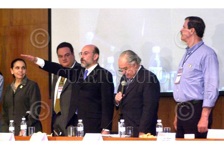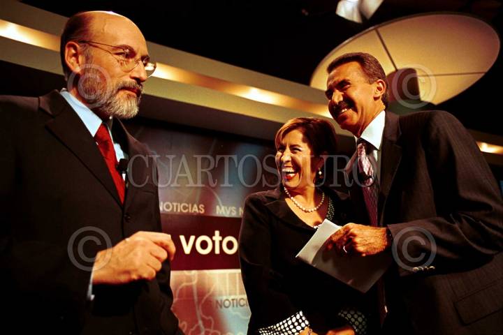 Luis Felipe Bravo Mena, Rosario Robles, presidenta del Roberto Madrazo, y Jorge Emilio González, presidentes del PAN, PRD, PRI y PVEM, estuvieron presentes en el programa, Voto por Voto, en el cual se afirmó que la política hoy en día ha cambiado, puesto que antes hubiera sido casi imposible que los diferentes partidos estuvieran juntos. FOTO: Sandra Perdomo/CUARTOSCURO.COM