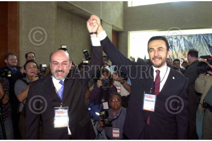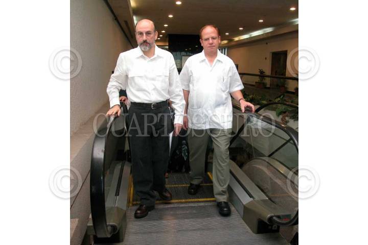 Juan Carlos del Río, candidato a gobernador de Campeche, y Luis Felipe Bravo Mena, acusan a la empresa contratada por el IFE de fraude en Campeche. FOTO: Sandra Perdomo/CUARTOSCURO.COM