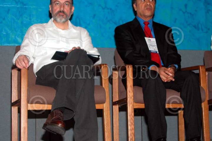 Los presidentes del PAN, Luis Felipe Bravo Mena, y del partido del Trabajo, Alberto Anaya, asistieron hoy al Primer Foro de Participación Social, celebarado en Cancún, Quintana Roo. FOTO: Elizabeth Ruiz/CUARTOSCURO.COM
