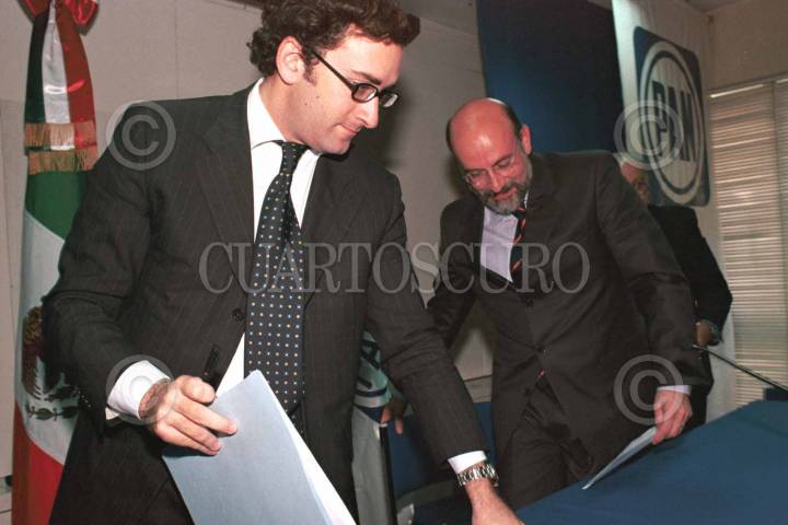 Alejandro Agag, representante de la Democracia Cristiana Española y Luis Felipe Bravo Mena, anunciaron la realización del Congreso de la Internacional Democrata Cristiana, a finales de noviembre. FOTO: Oswaldo Ramírez/CUARTOSCURO.COM