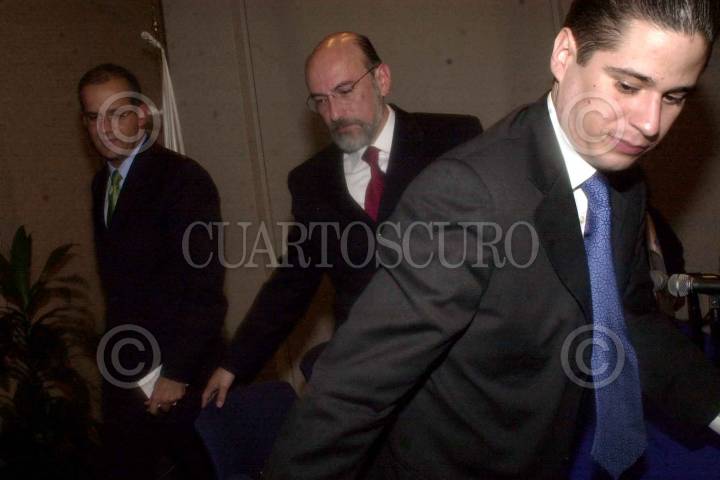 Carlos Medina, coordinador de proyectos electorales 2003, Juan Carlos del Río, candidato a gobernador de Campeche, y Luis Felipe Bravo Mena, seguros de ganar las elecciones en el estado de Campeche. FOTO: Sandra Perdomo/CUARTOSCURO.COM