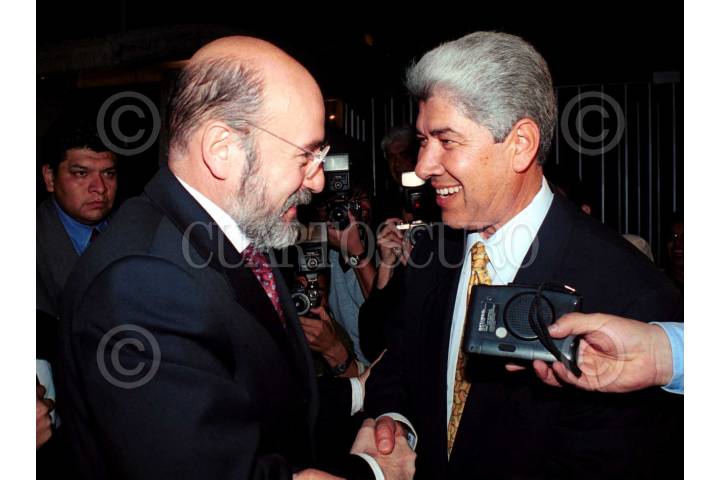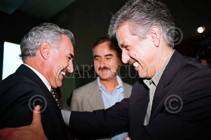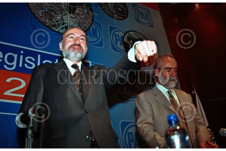 Luis Felipe Bravo Mena presidente del Partido Acción Nacional, y el senador Diego Fernández de Cevallos antes de dar inició a la reunión para realizar la agenda legislativa 2003-2004. FOTO: Sandra Perdomo/CUARTOSCURO.COM