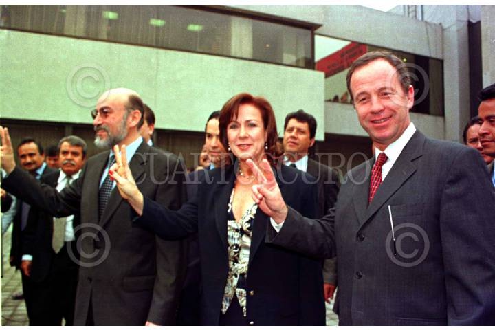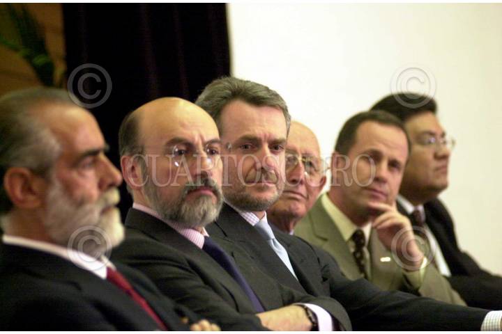 Patricio Patrón gobernador de Yucatán, Luis Felipe Bravo Mena, presidente del Partido Acción Nacional (PAN) acompañado de Leticia de Glouthier, Carlos Romero Hicks gobernador de Guanajuato, y Jóse Luis Luegue Tamargo, presidenmte del PAN del D.F, presentaron el libro sobre Manuel J. Clouthier "La Fuerza del Ideal" en la Cede Nacional del PAN. FOTO: Eunice Adorno/CUARTOSCURO.COm