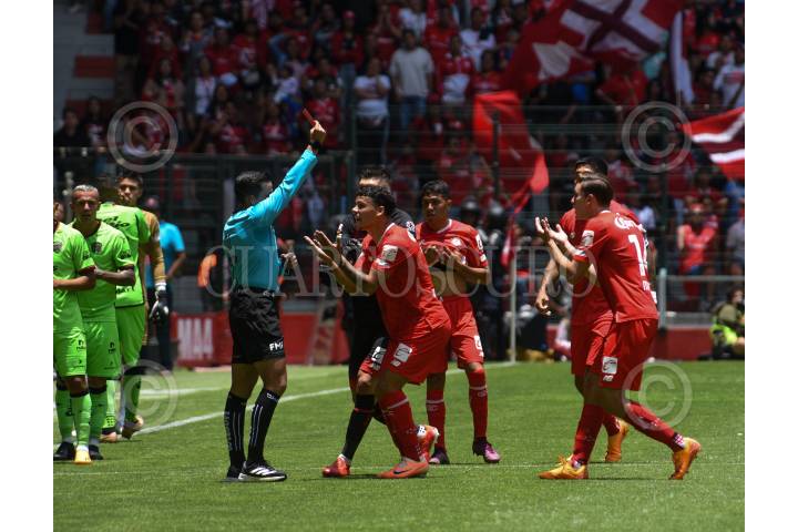 Expulsión de Maximiliano Araujo delantero de los Diablos de Toluca durante el encuentro de la jornada 3 del Torneo Apertura 2023.
